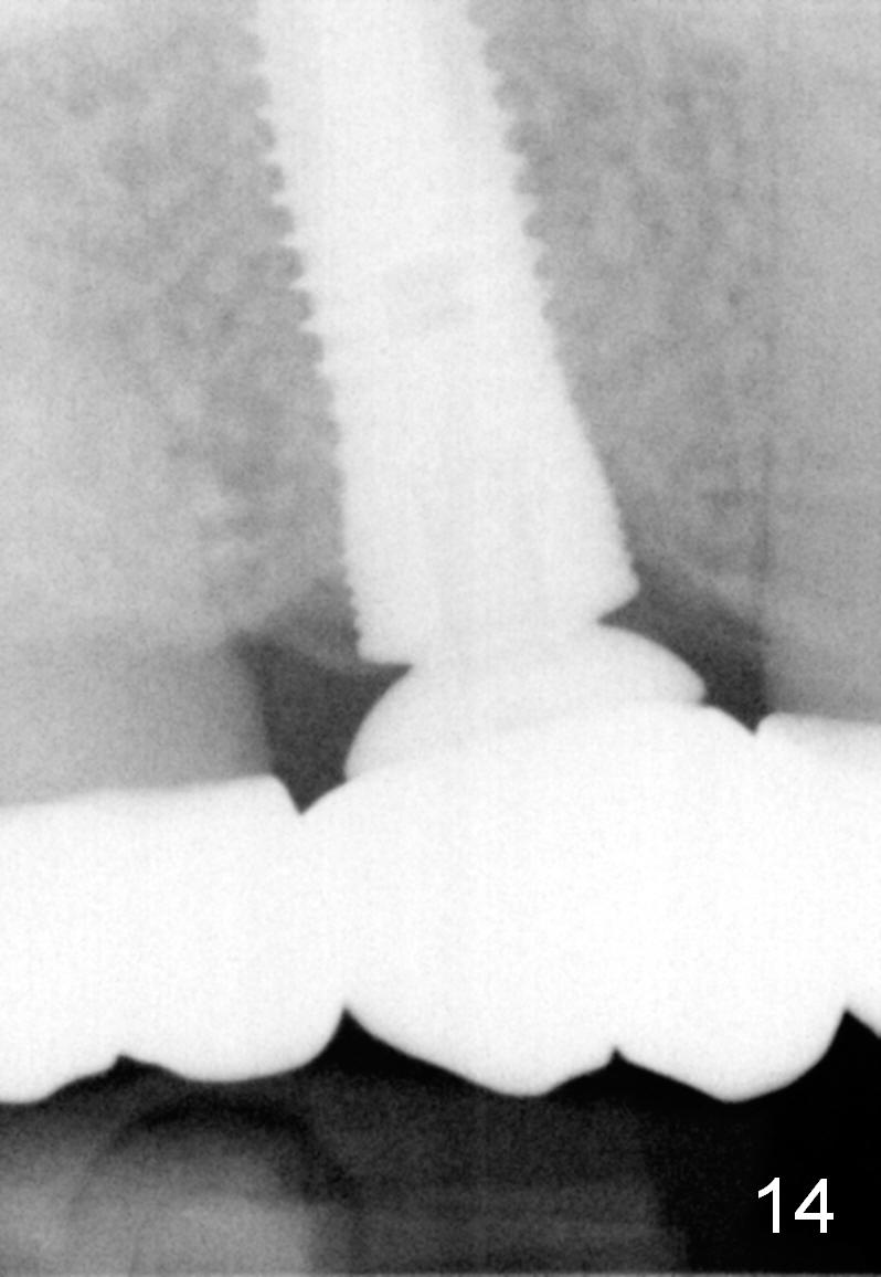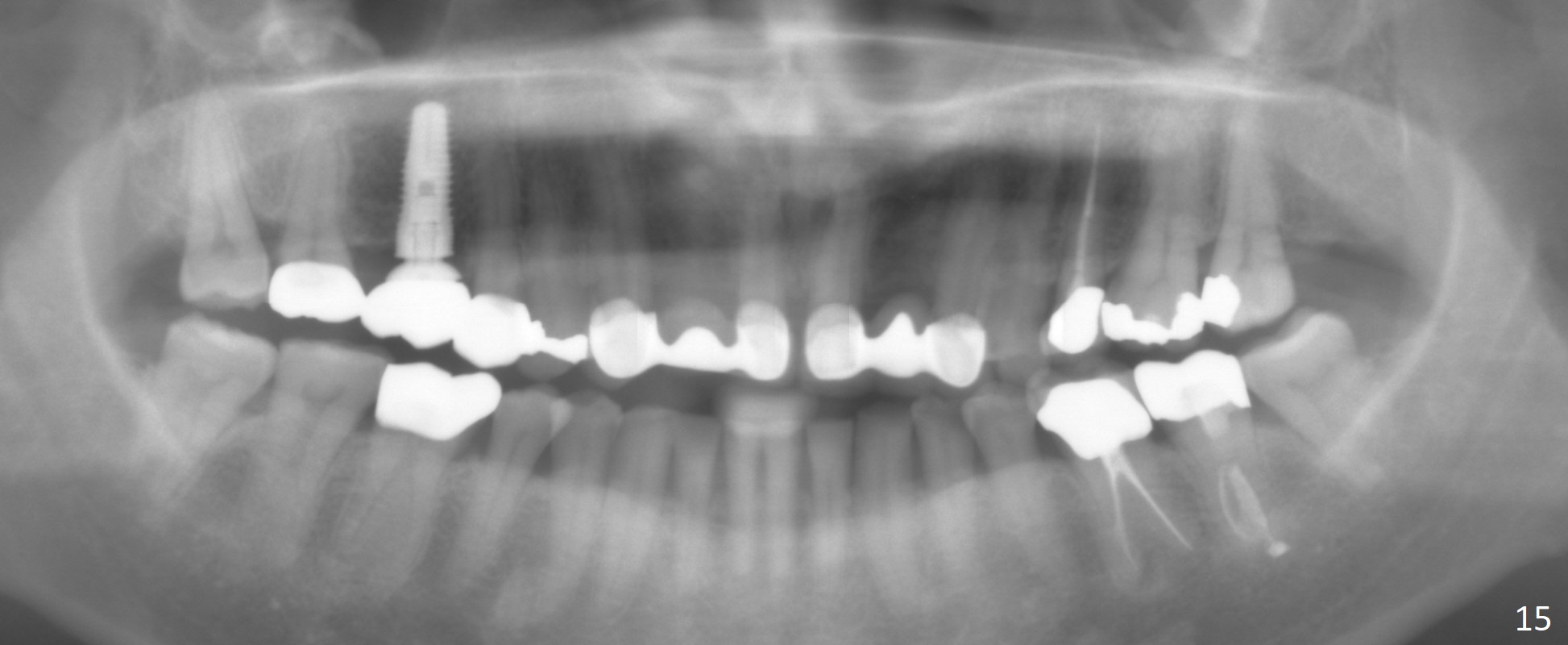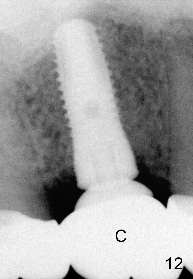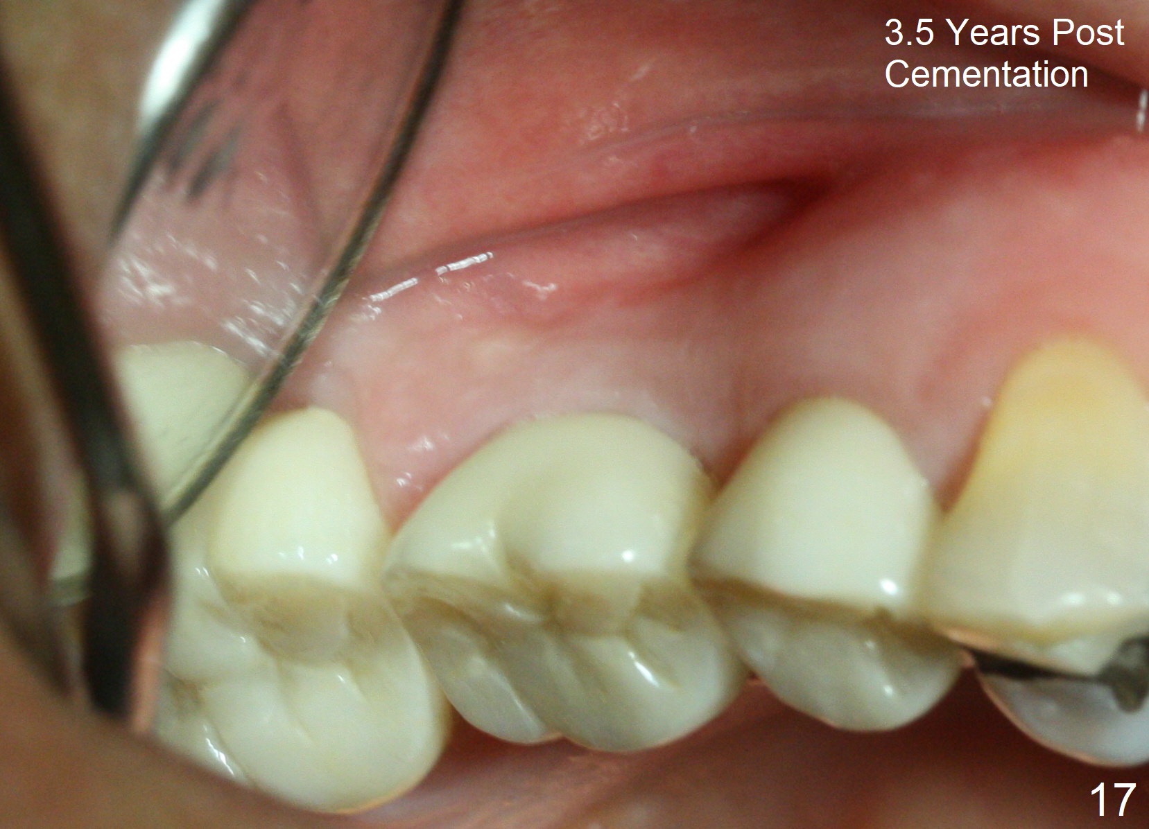 In brief, bone expanders or osteotomes can be used for bone expansion and condensation to improve primary stability of implant placement. No bone graft appears to be needed. The buccal concavity remains minimal 6 years post cementation (Fig.18). In fact he is a bruxer with torus palatinus (Fig.19). The bridge of #9-11 is loose because of subgingival fracture of the abutment of #11 for 2.5 years (Fig.20).