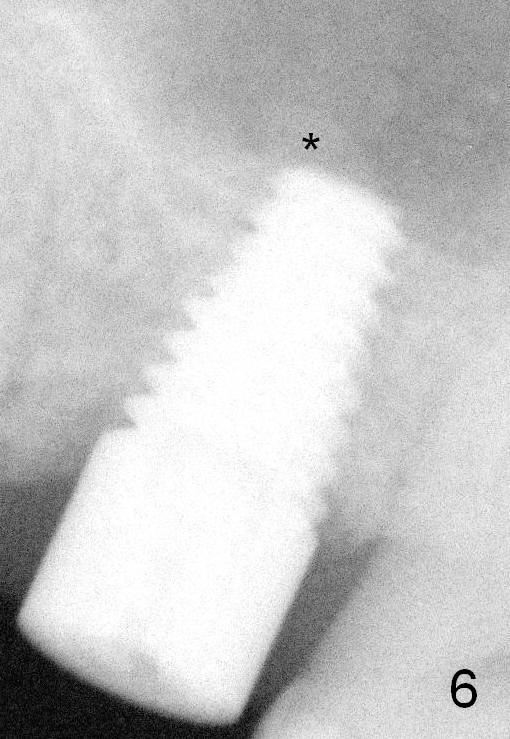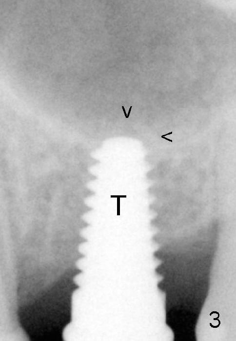 A 4.5x11 mm tap drill is inserted ~ 7 mm with resistance (Fig.3 T). Part of the sinus floor has been pushed upward (arrowheads).