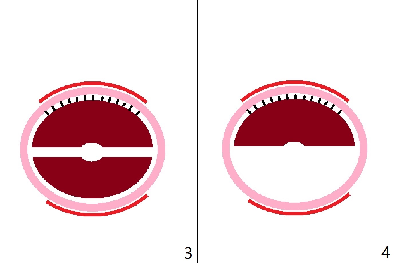 形成牙槽窝盾步骤是分根(图三(裂钻)),使用牙周膜刀(periotomes, proximators)拔除腭侧根(图四),