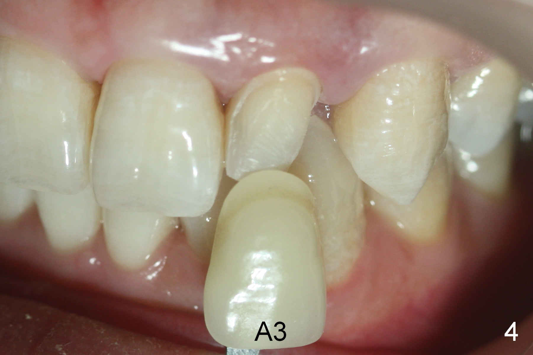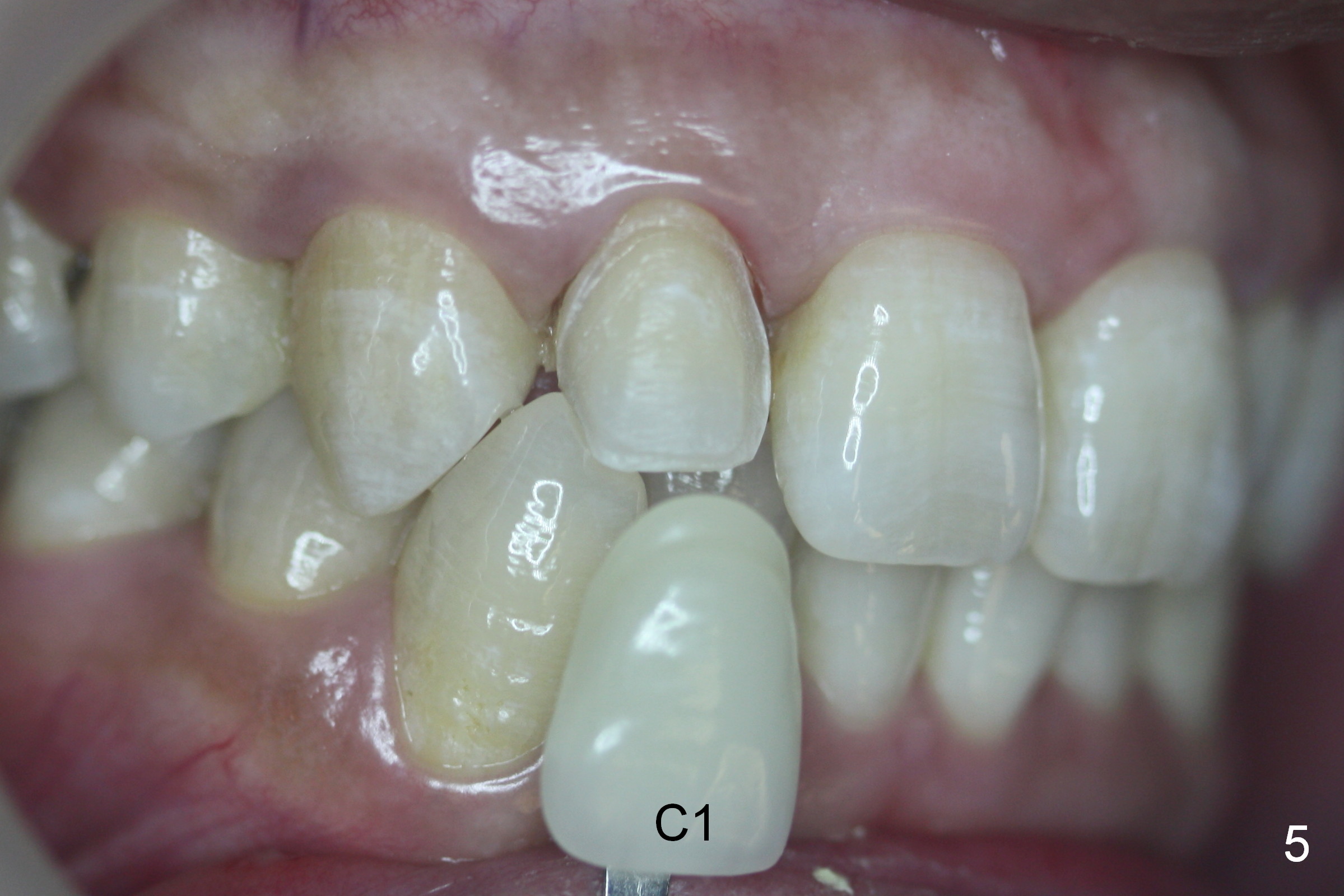 Clinically, C1 appears to be the most appropriate shade for this case (body and incisal portion, Fig.5), while A2 for the cervix (Fig.6). Please call me about the proper material for veneers after you review the case. Thanks.