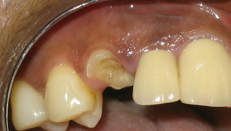 圖三:尖牙爛到牙根,黃色膿水從根管口流出 |