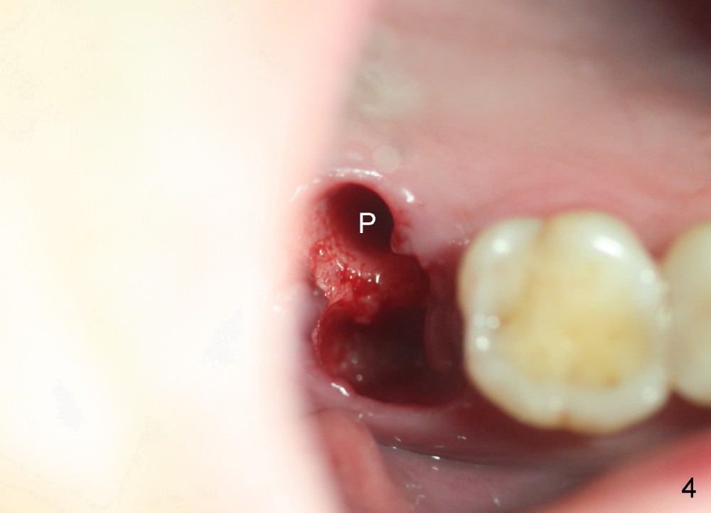 Immediately preop PA and photo confirm that the upper right 2nd molar is nonsalvageable (Fig.1,2). After extraction, it appears that there are 3 potential sites for immediate implant.